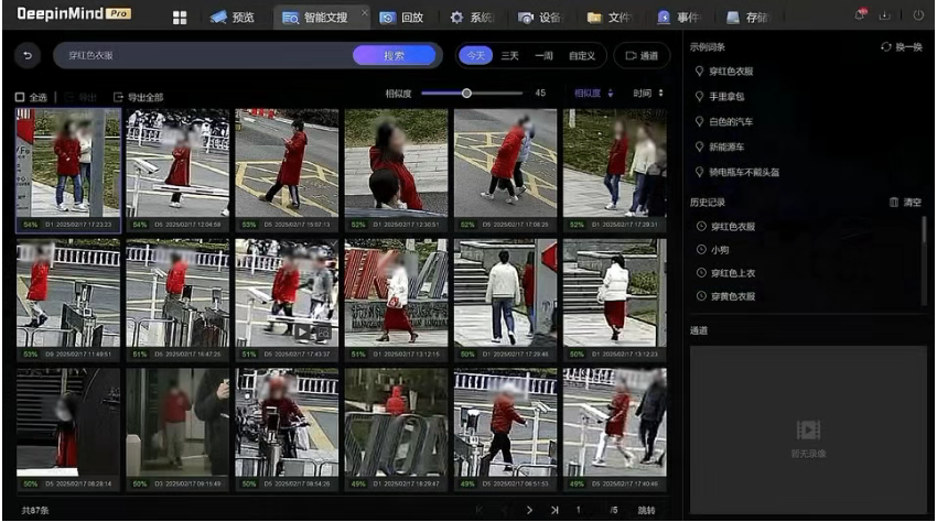 利用多模態(tài)大模型技術,提取圖像和搜索語言的特征并對齊關鍵語義特征,從而實現(xiàn)高精度搜索。例如對 “穿紅色衣服”、“黑色背包” 等常見目標描述,檢索 TOP20 命中率可達 90% 以上(數據來自??低晫嶒炇遥?/span>········